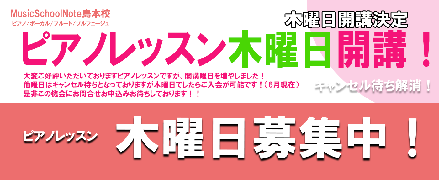 ピアノレッスン生徒募集中!(木曜コース)